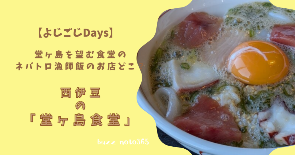 【よじごじ】堂ヶ島を望む食堂のネバトロ漁師飯のお店どこ?西伊豆の「堂ヶ島食堂」