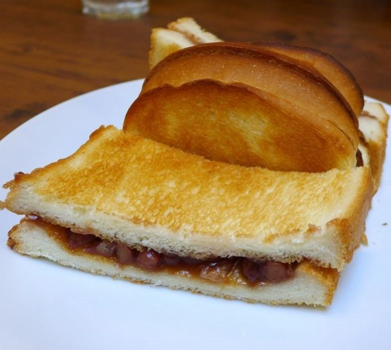 こんがり焼いたトーストの上に、甘さ控えめのあんこをたっぷりサンドした名古屋ならではの定番メニュー。